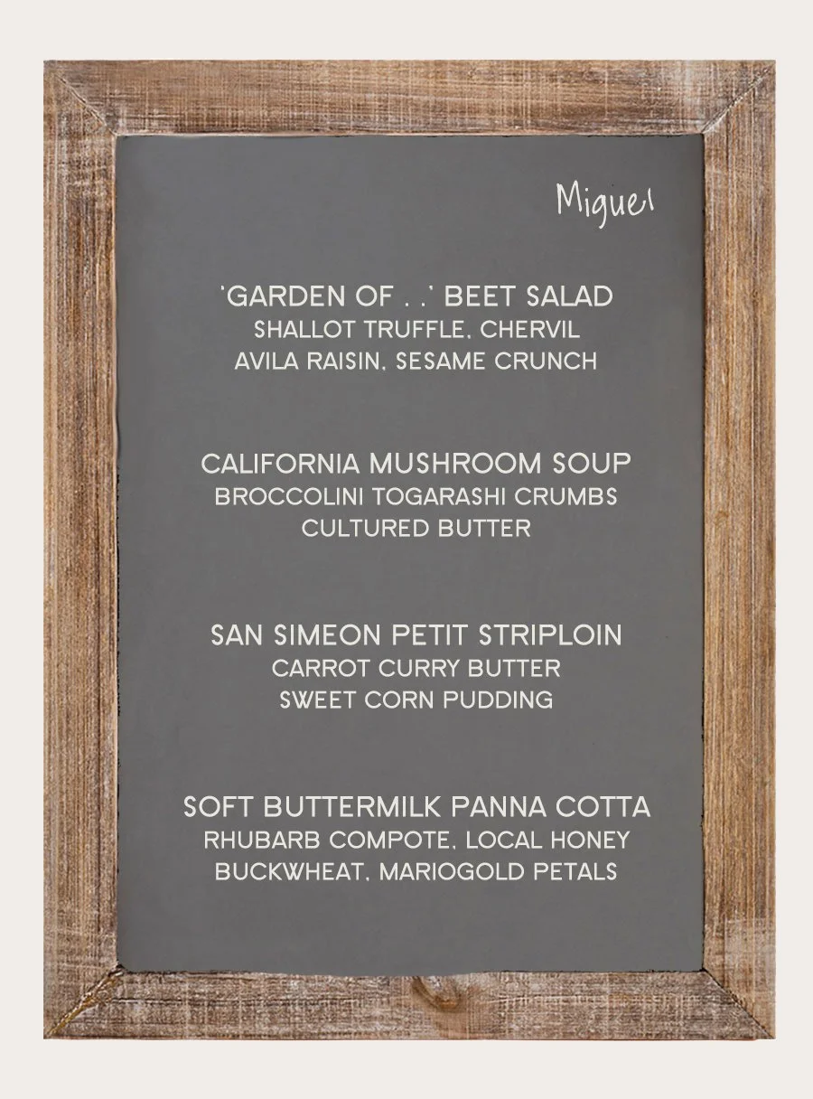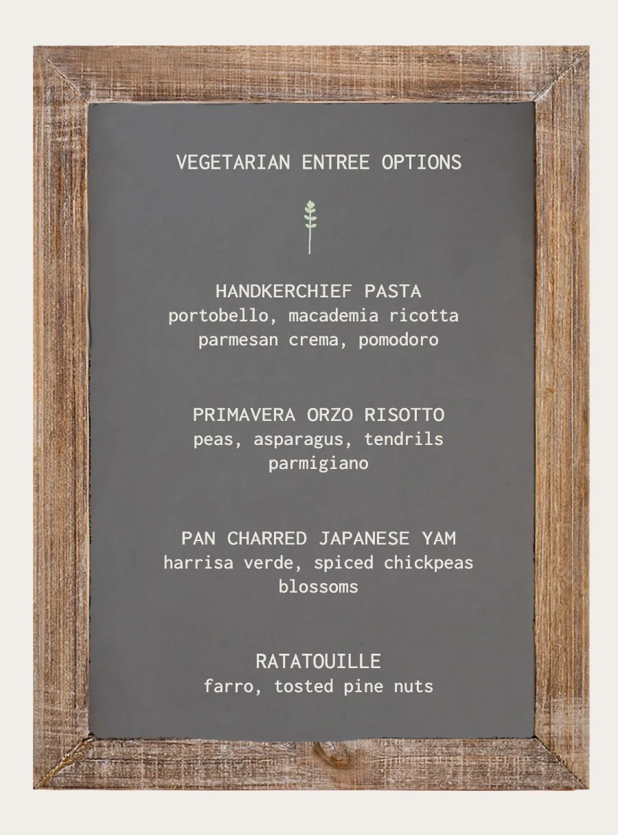 Select a menu as-is or mix and match TWO starters, ONE entree, and ONE dessert for one FOUR-COURSE menu. These menus also come with rustic house focaccia and house butter and also include cucumber water pitchers.